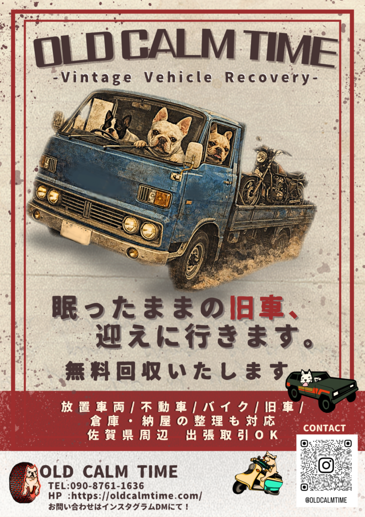 インスタグラムでは旧車とフレンチブルドッグがいる日常、ガレージの空気感、そして三匹のコブタたちの何気ない毎日を発信しています。写真と動画で伝わるOLD CALM TIME の世界を、ぜひ覗いてみてください。